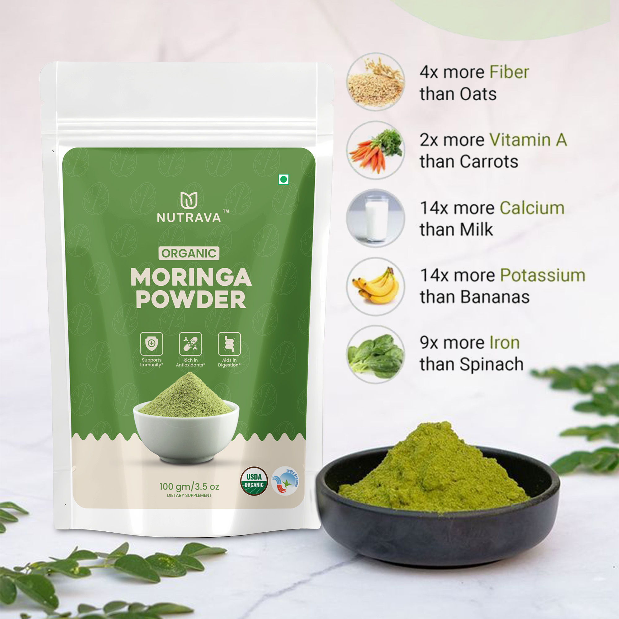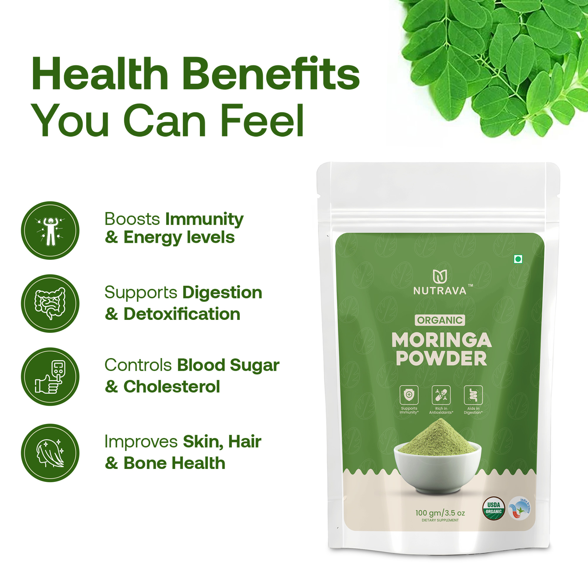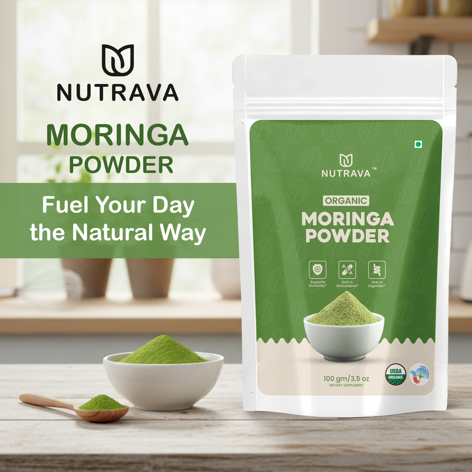 Nutrava Moringa Powder – Plant-Based Daily Nutrition & Natural Vitality Support